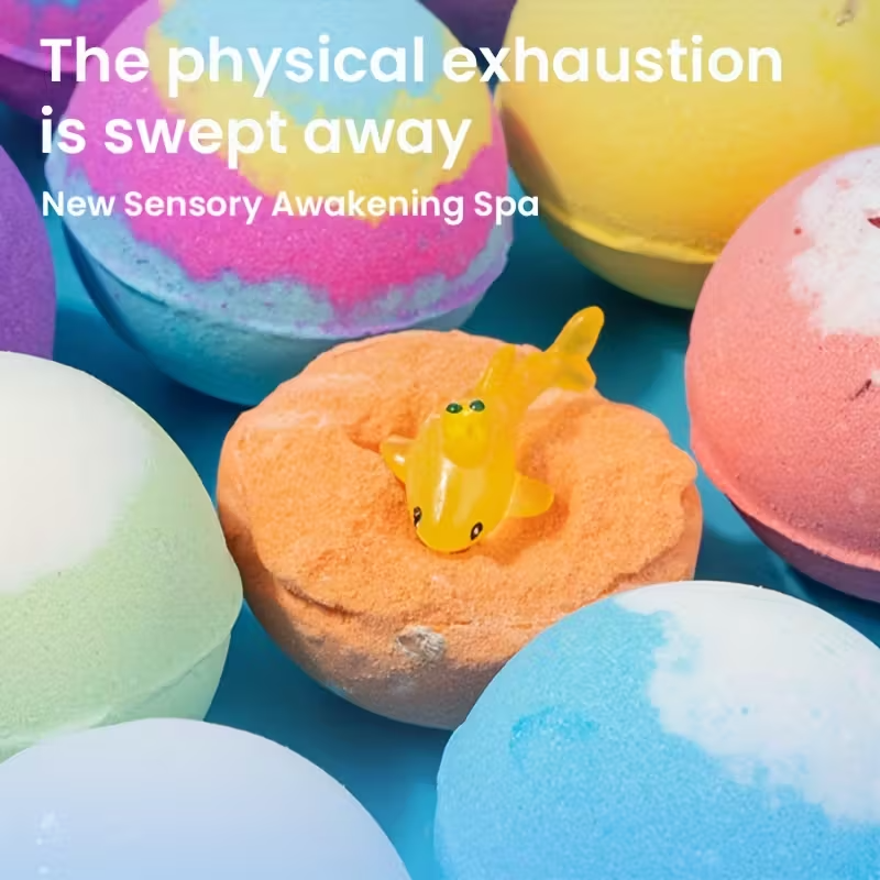 Each set contains multiple ocean-themed bath balls, each with a unique scent and surprise inside.